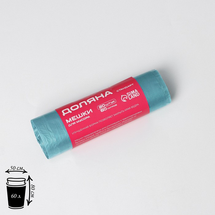 Мешки для мусора ПНД 50х80см, 60л ,8мкм, 20шт, цвет синий "Стандарт"