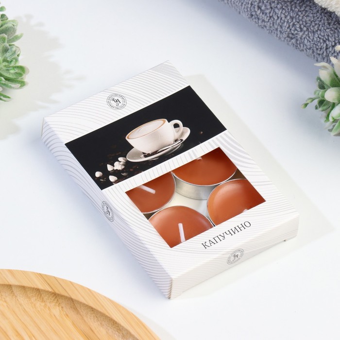 Набор чайных свечей ароматизированных в подарочной коробке, 6 шт "Капучино"