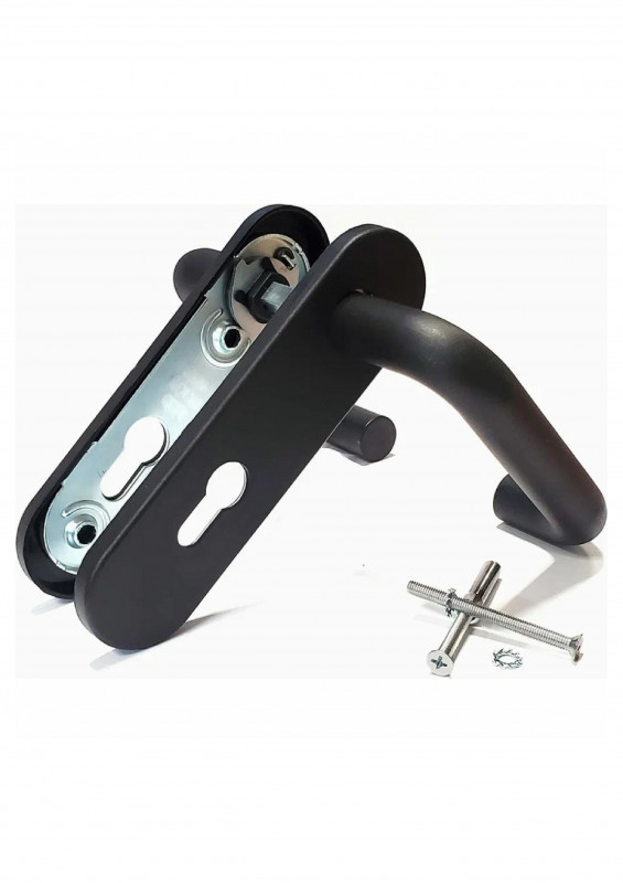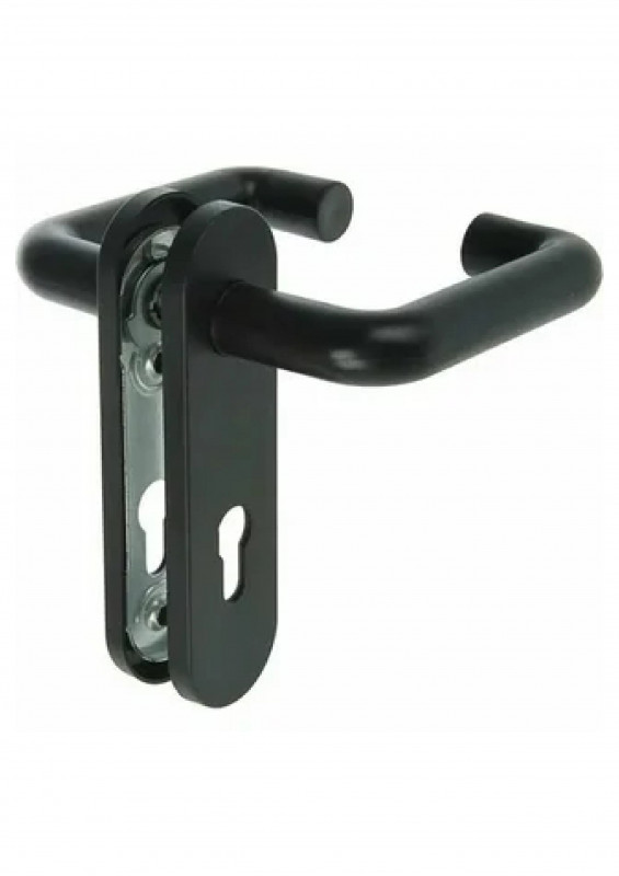 Ручка для противопожарной двери Особенности:Размеры - 174х48 мм.Вид - Классическая.Межосевое расстояние - 72 мм.Цвет - Чёрный.Способ установки ручки - Стяжки.