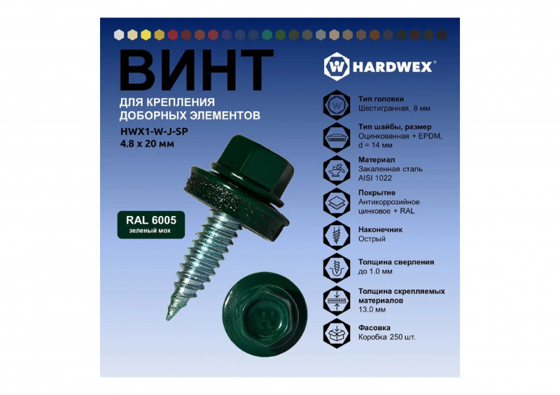 Саморез кровельный HWX1-W-J-SP уп/50шт 4,8х20мм TM Hardwex в наличии по цене 392 рублей в интернет-магазине «ЖЕЛЕЗО» в в Тюмени. Мы предлагаем лучшую стоимость на категорию саморезы кровельные с шайбой . Приобрести Саморез кровельный HWX1-W-J-SP уп/50шт 4,8х20мм TM Hardwex можно оформив заказ в интернет-магазине, или отправив заявку по почте, а также по телефону 8 (800) 444-50-26 или в магазине. Бесплатная доставка при заказе от 1000 руб.